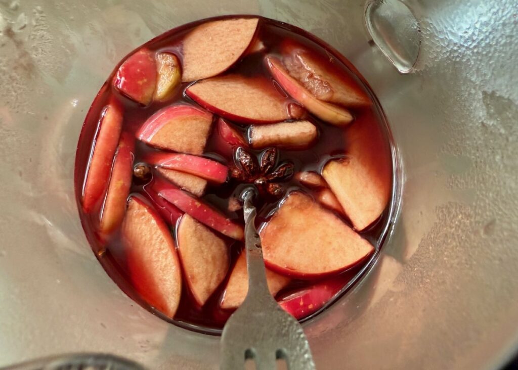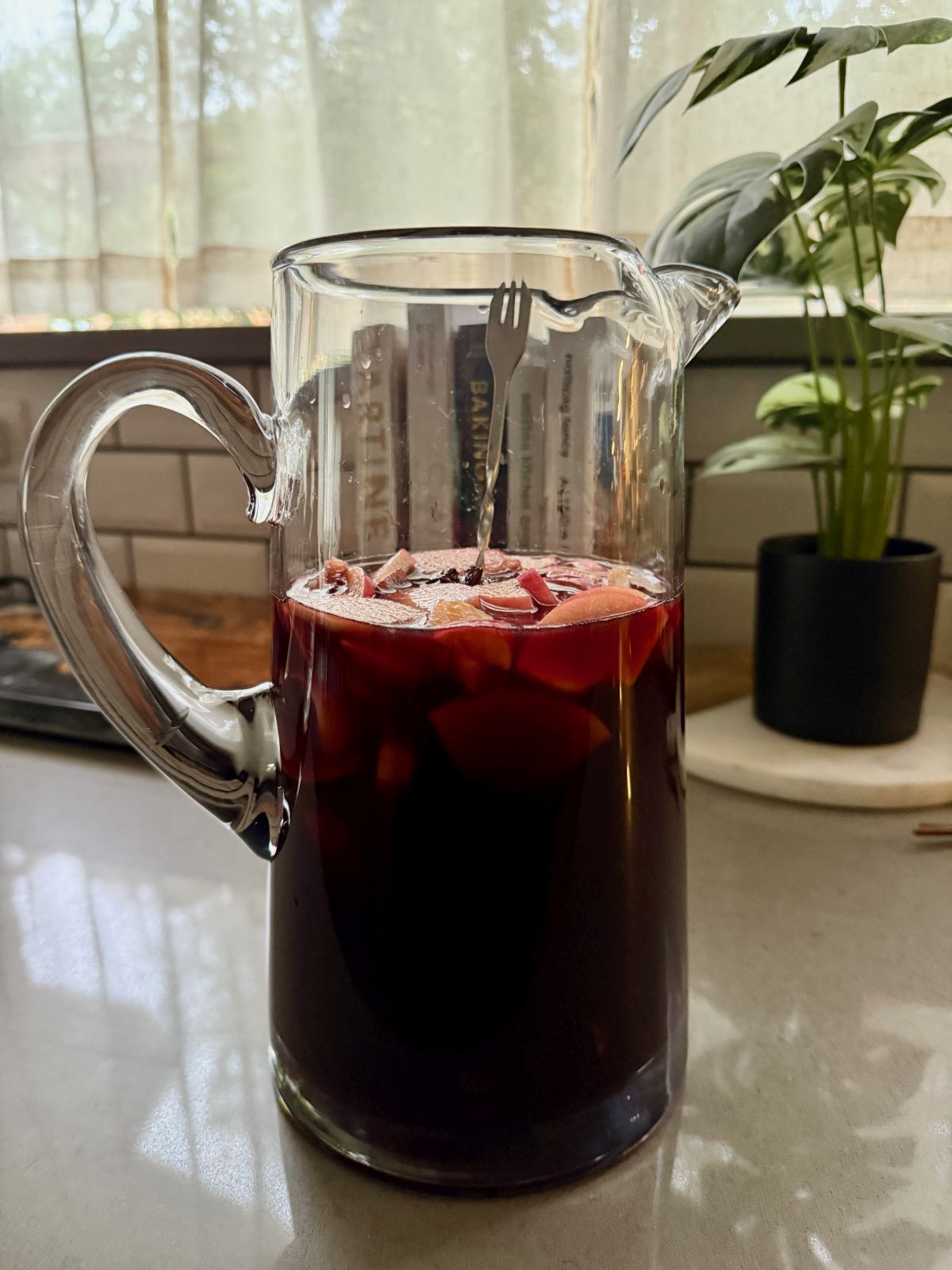 What I love about this fall sangria recipe is that it’s mellow and balanced—not overly sweet, not too dry, but also not super boozy. You could make a huge batch if you need (but I just went with a single batch, perfect for 3 ladies).