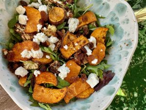 Roasted Sweet Potato & Goat Cheese Salad with Roasted Shallot Dressing